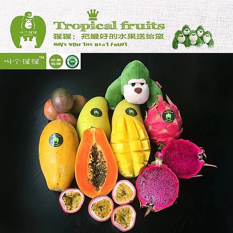 【當季水果】大吉大利水果套餐,發外省快遞順豐包郵,(不含偏遠省份)。甜甜蜜蜜,大吉大利把最好的水果獻給你。套餐水果包含:本地金煌芒2個(約2斤)、 紅心火龍果2個(約2.5斤)、 紅心木瓜一個(約2斤)、百香果5個。浪漫情人節,讓猩猩陪在你身邊!